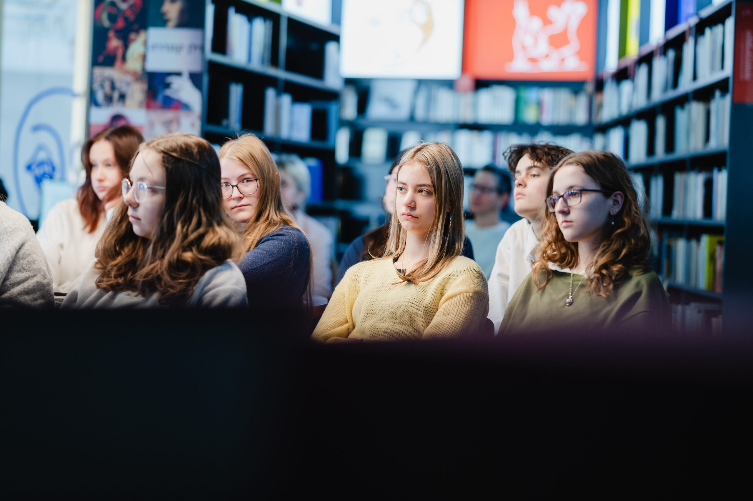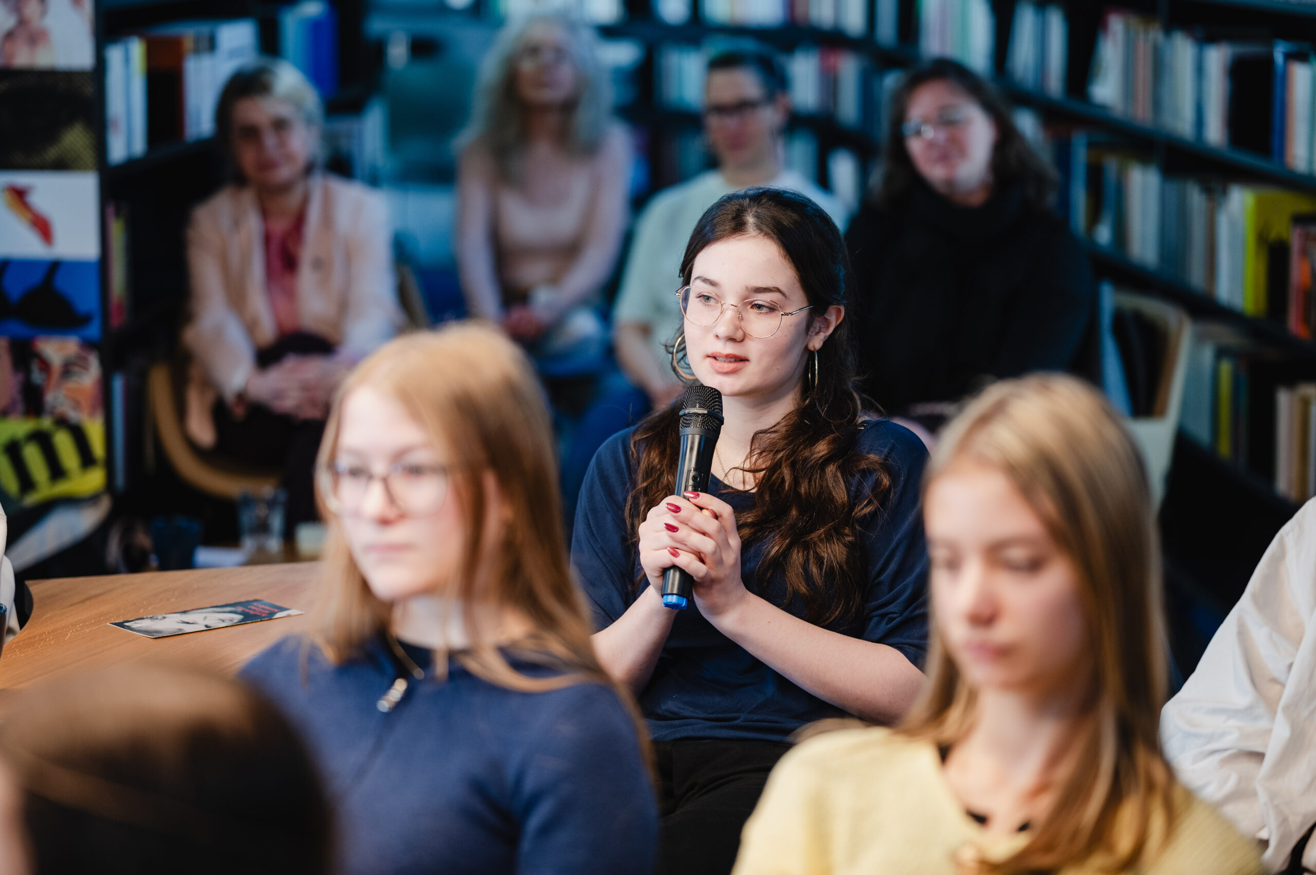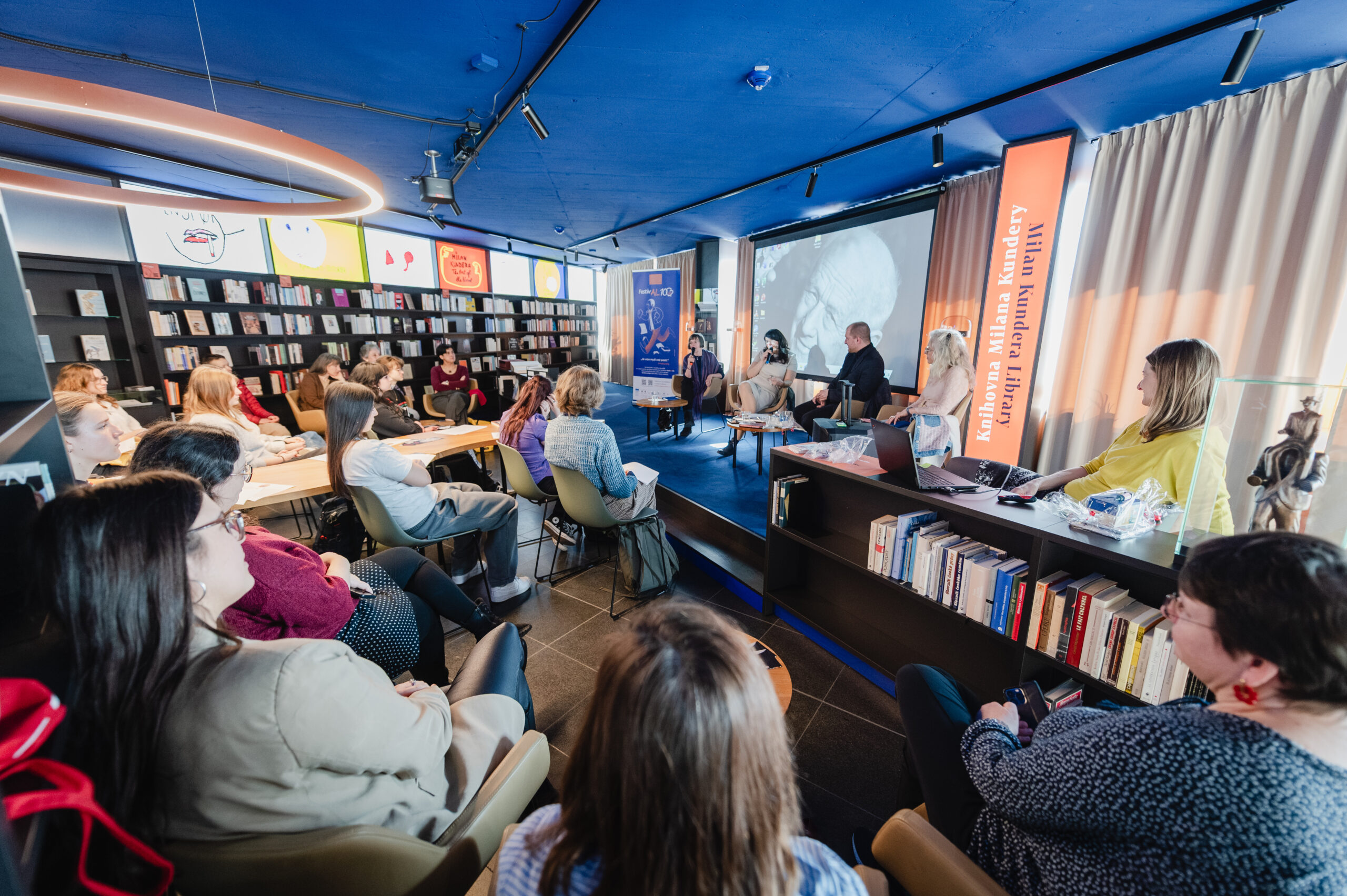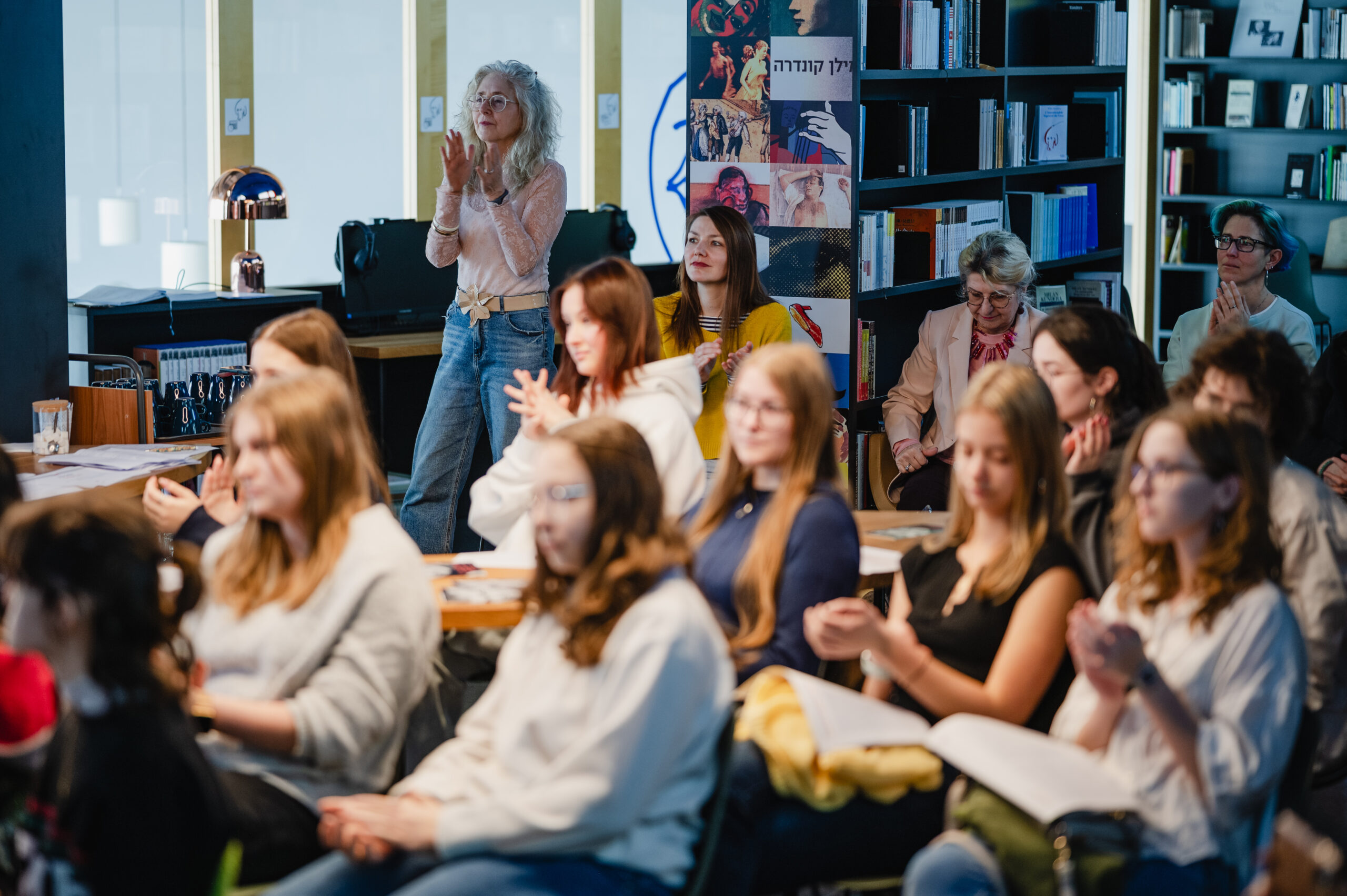 Autoři a autorky oceněných literárních příspěvků soutěže Mladí HUMAN-isté ze středních škol v Brně, St. Pöltenu a Vídni se zúčastnili besedy s překladatelem a tvůrcem Ondřejem Cikánem. Beseda proběhla v Knihovně Milana Kundery ve spolupráci s Národním pedagogickým institutem, Moravskou zemskou knihovnou, městem Brnem a městem St. Pölten. Foto: Jakub Šnajdr