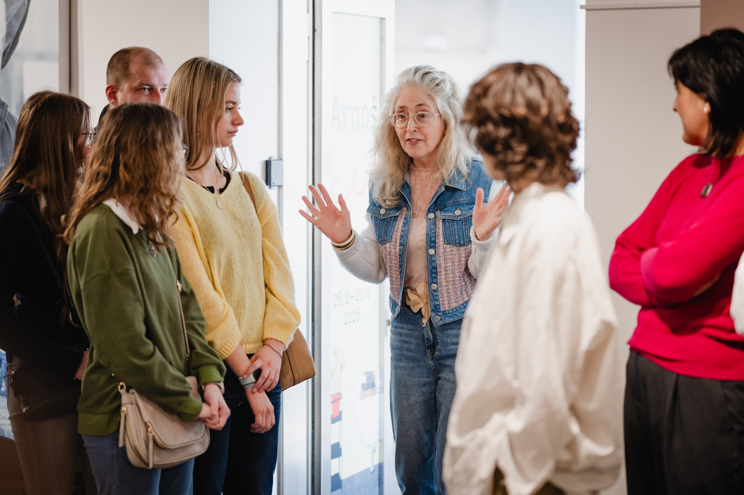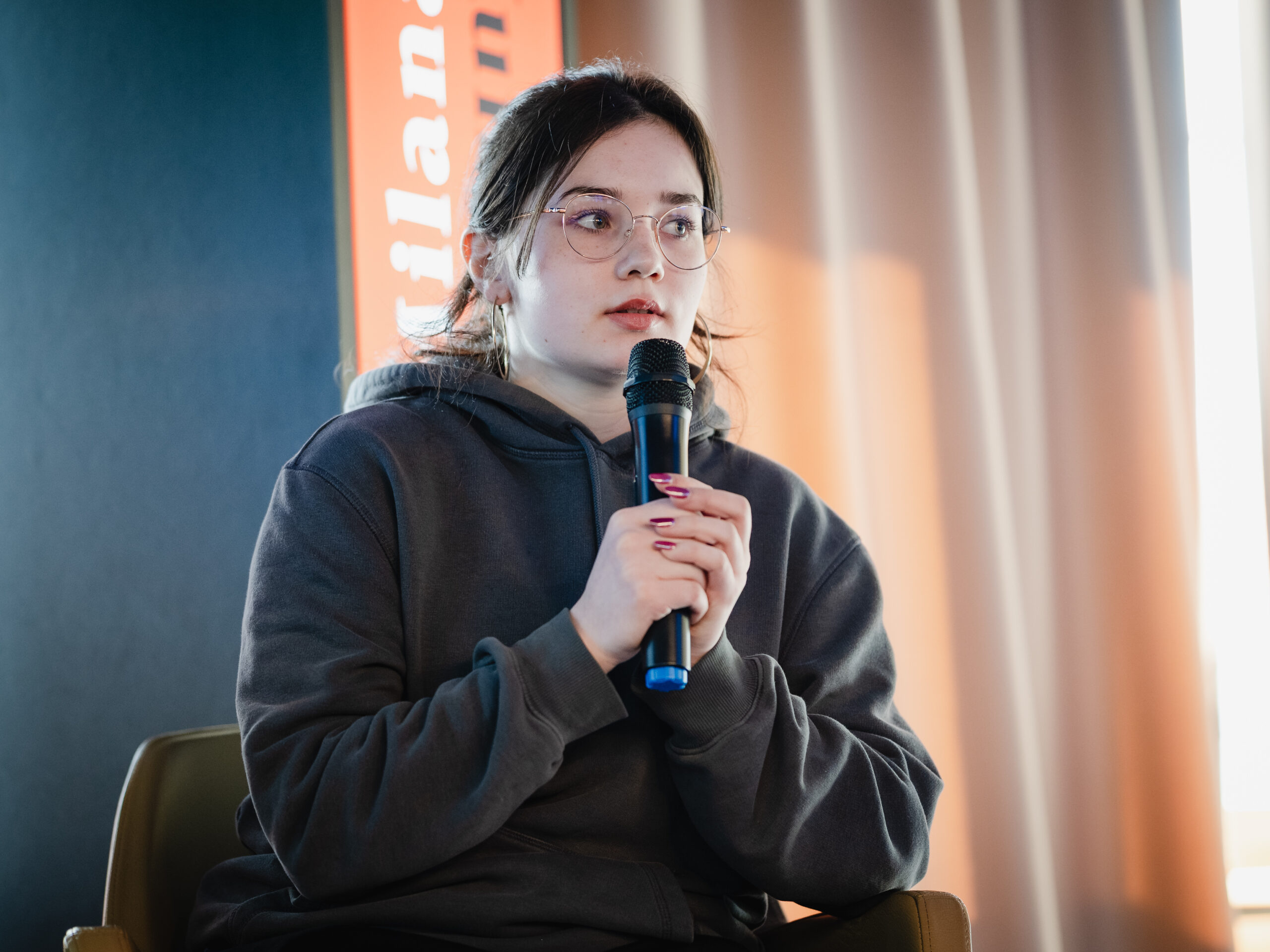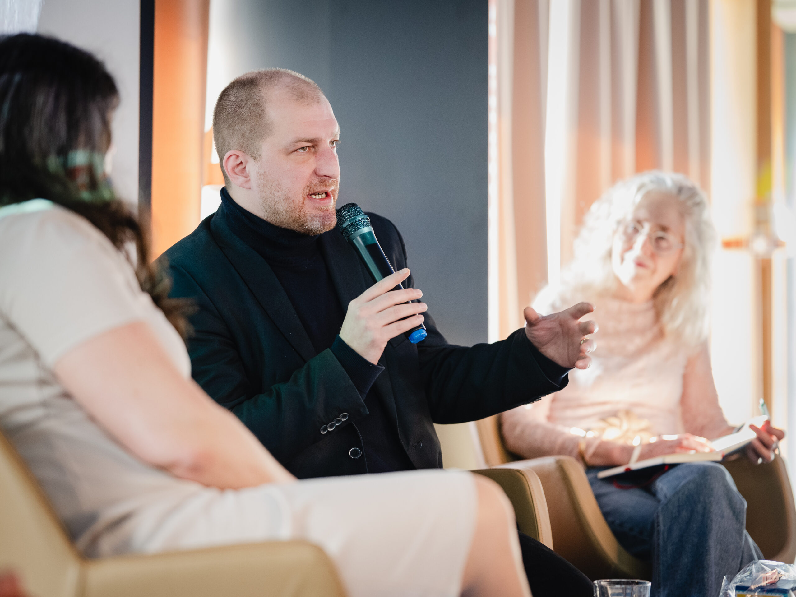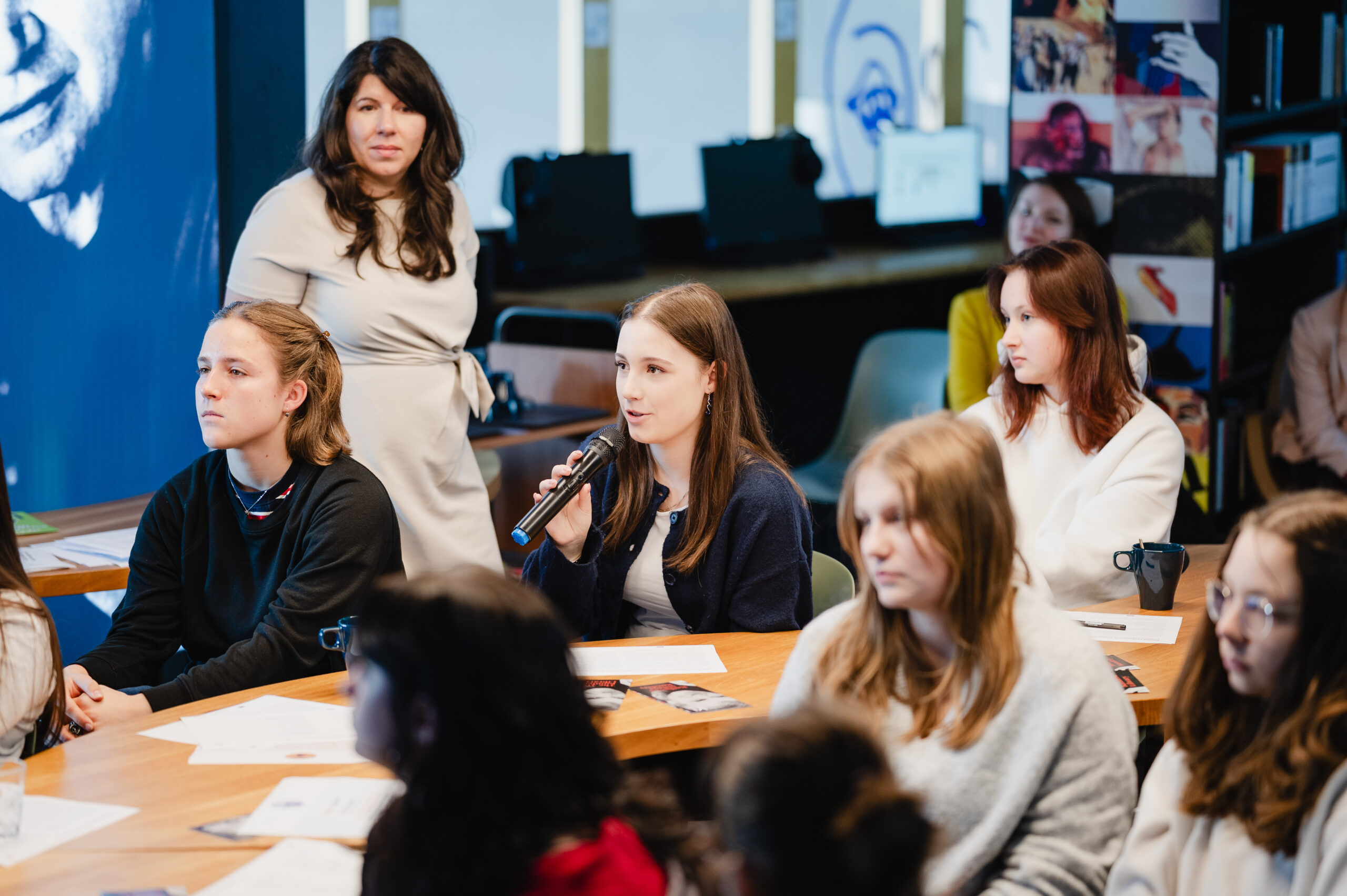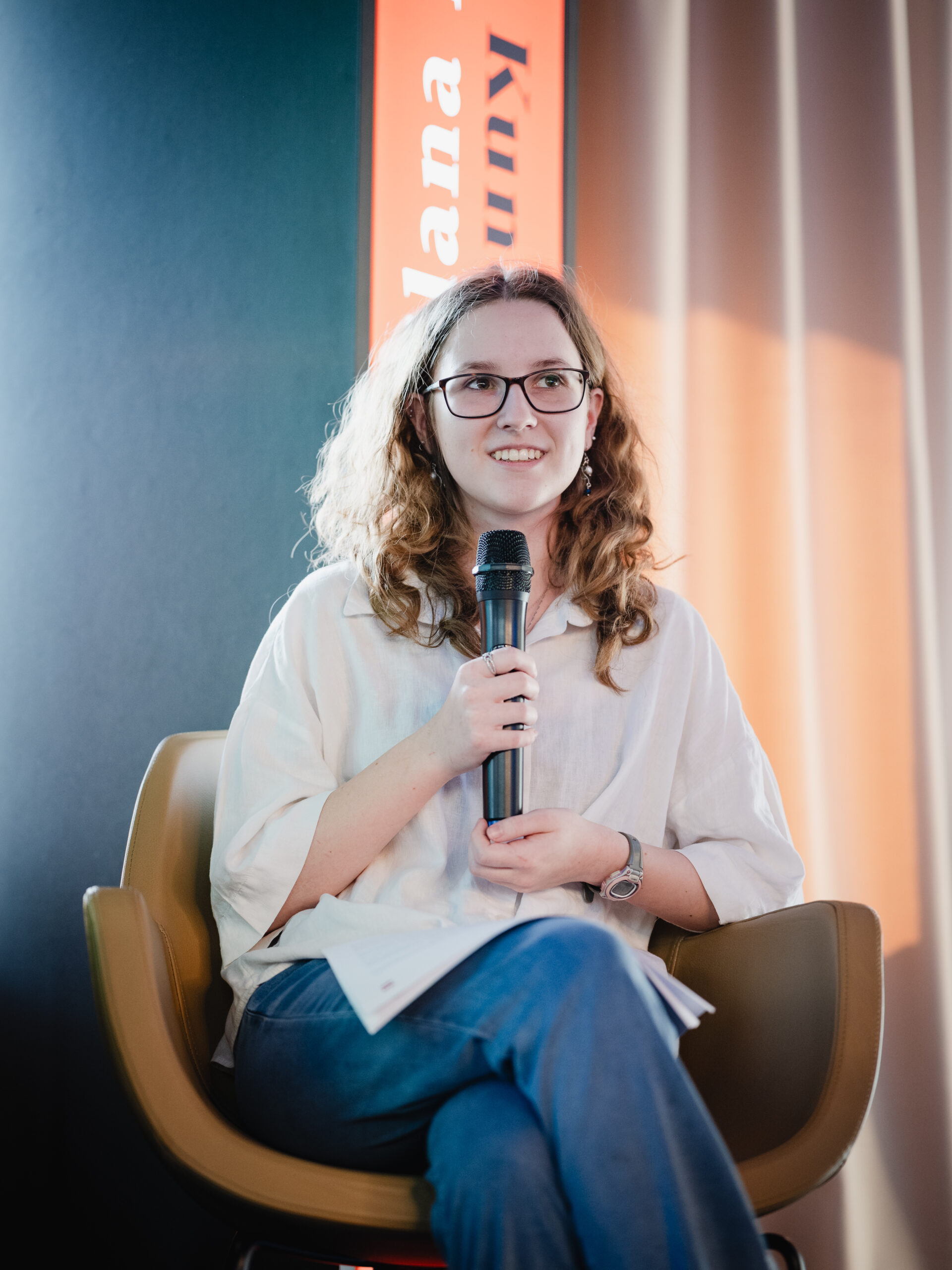 Autoři a autorky oceněných literárních příspěvků soutěže Mladí HUMAN-isté ze středních škol v Brně, St. Pöltenu a Vídni se zúčastnili besedy s překladatelem a tvůrcem Ondřejem Cikánem. Beseda proběhla v Knihovně Milana Kundery ve spolupráci s Národním pedagogickým institutem, Moravskou zemskou knihovnou, městem Brnem a městem St. Pölten. Foto: Jakub Šnajdr