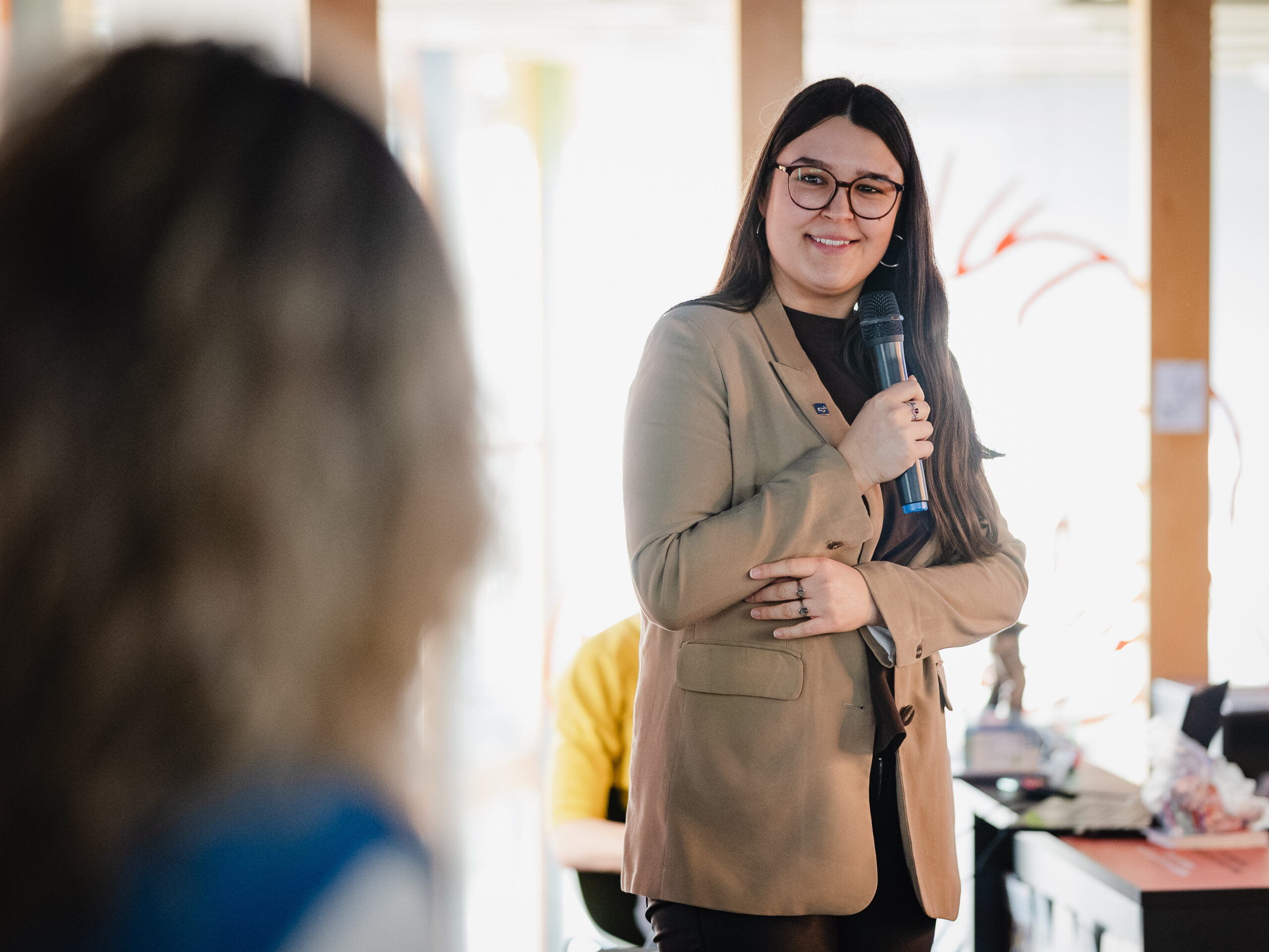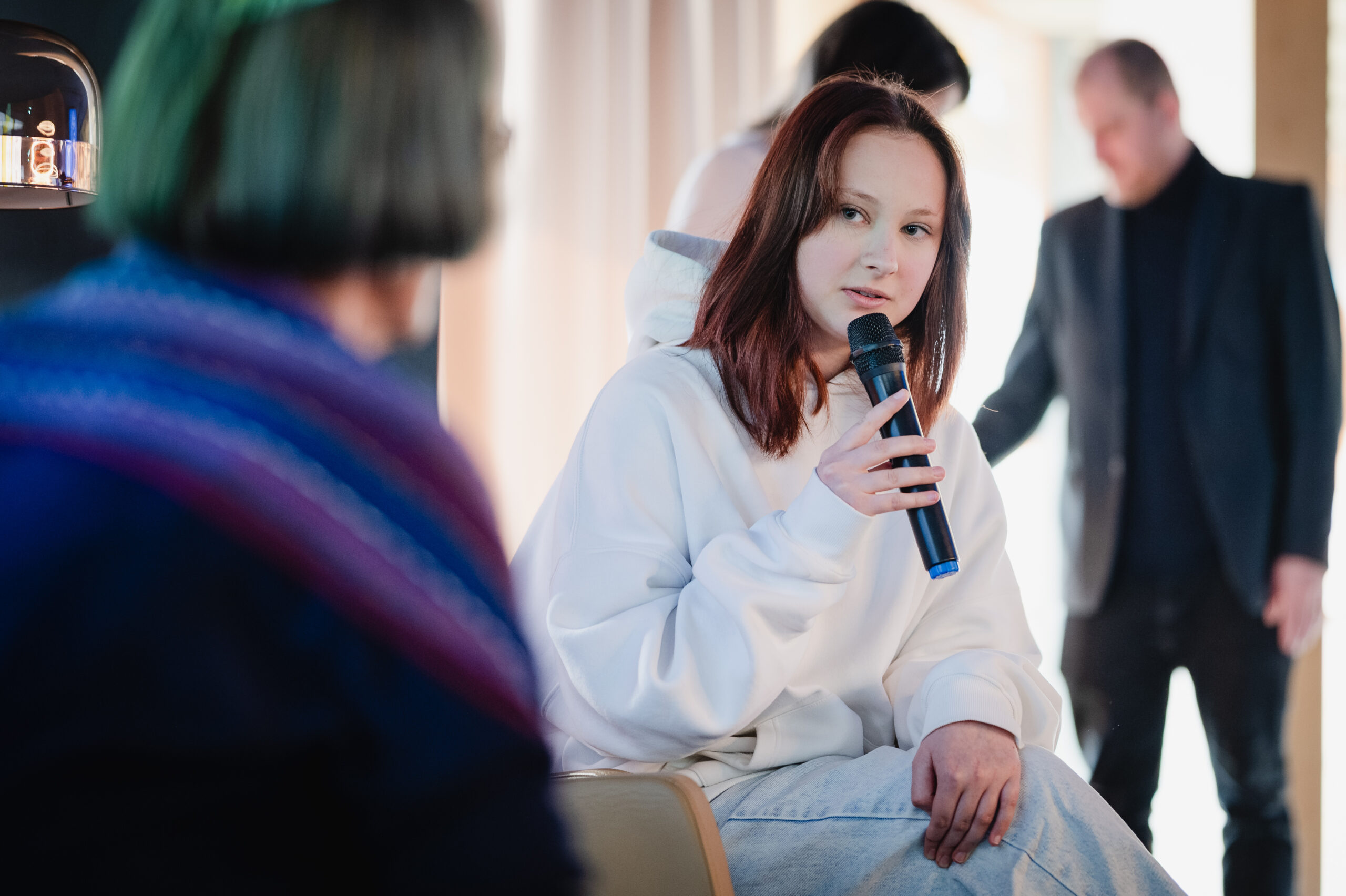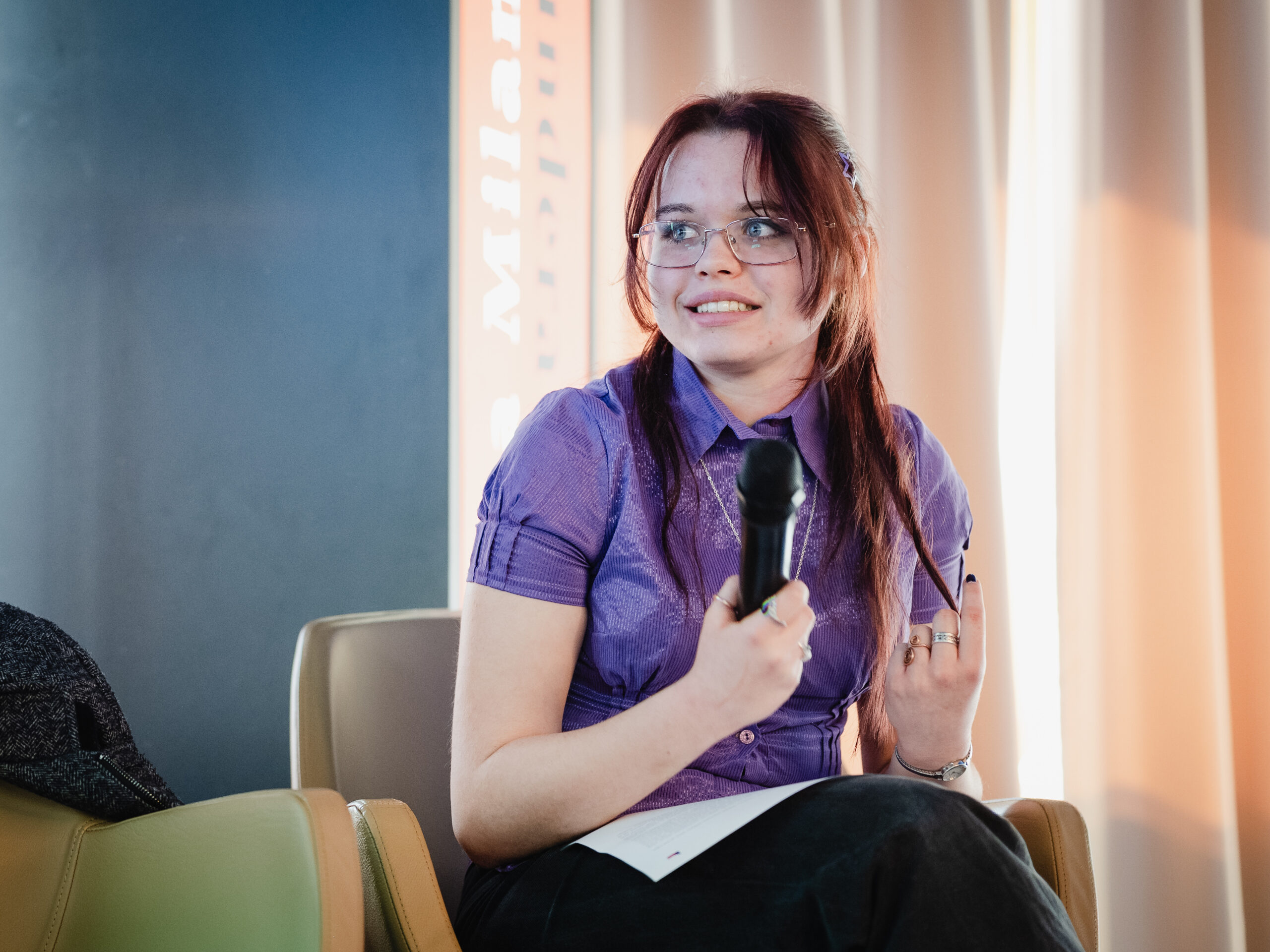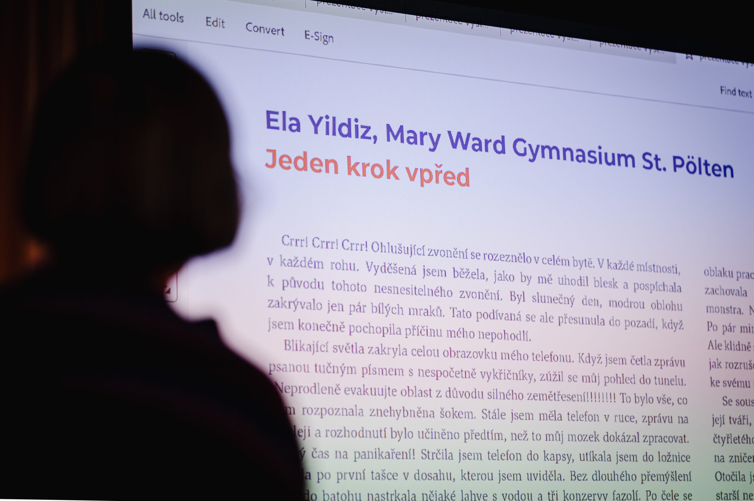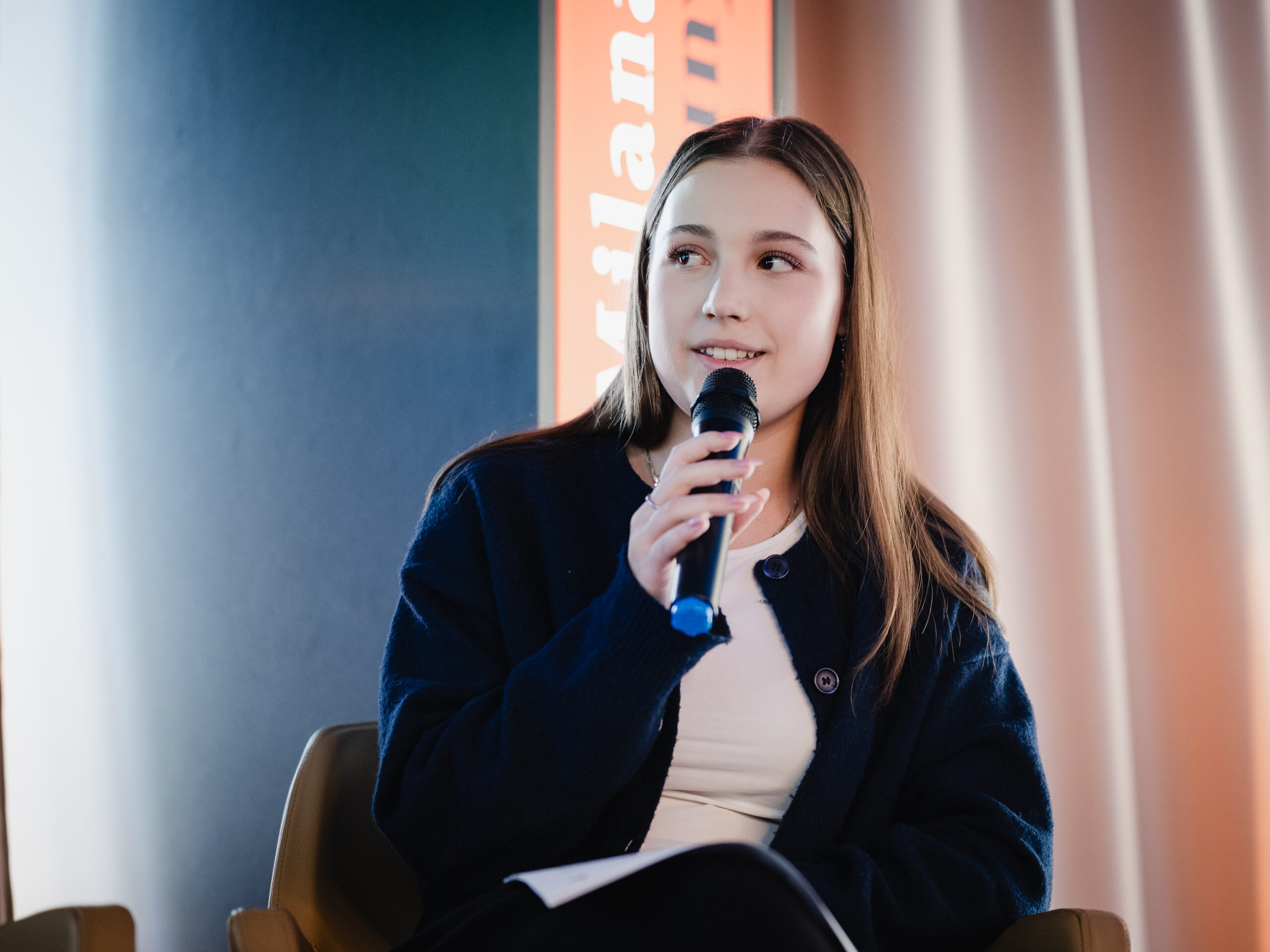 Autoři a autorky oceněných literárních příspěvků soutěže Mladí HUMAN-isté ze středních škol v Brně, St. Pöltenu a Vídni se zúčastnili besedy s překladatelem a tvůrcem Ondřejem Cikánem. Beseda proběhla v Knihovně Milana Kundery ve spolupráci s Národním pedagogickým institutem, Moravskou zemskou knihovnou, městem Brnem a městem St. Pölten. Foto: Jakub Šnajdr